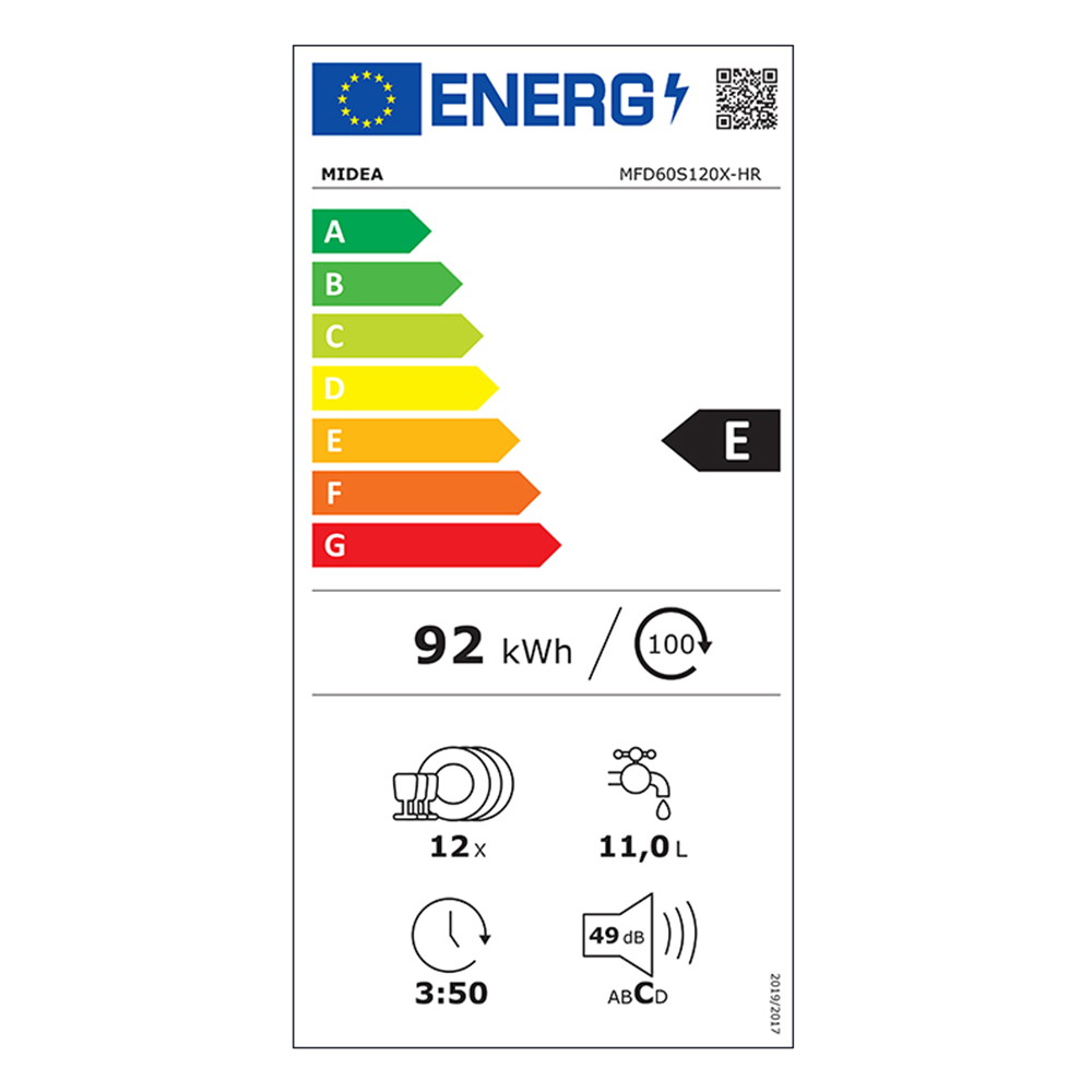 | Potrošnja energije [na 100 ciklusa, na temelju programa eco] (kWh) |