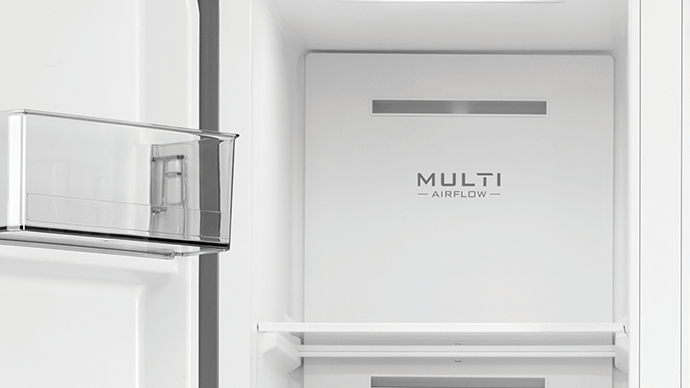 Multi-Air Flow sustav cirkulacije zraka osigurava trodimenzionalnu cirkulaciju hladnog zraka unutar uređaja. Kao rezultat, cijela komora ima odgovarajuću temperaturu, a uskladišteni proizvodi se ravnomjerno hlade. Na taj način hrana duže ostaje svježa te se čuva okus i nutritivna vrijednost hrane.